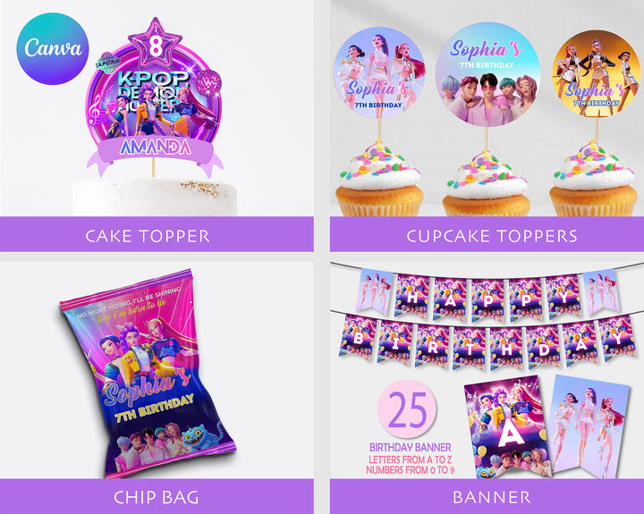 🎵 KPOP DEMON HUNTERS MEGA PARTY BUNDLE – 25 EDITABLE ITEMS 🎵