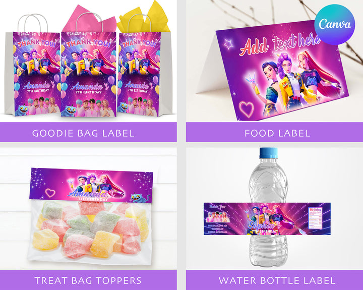 Packed with 25 editable KPOP birthday items, this vibrant collection brings the energy of your child’s favorite KPOP Demon Hunters characters straight to the party. Perfect for fans who love music, dance, and adventure!