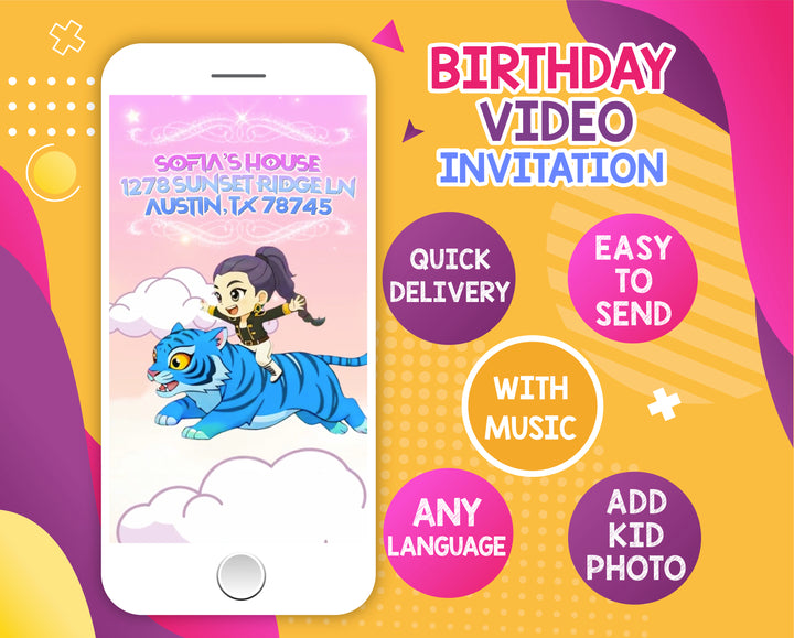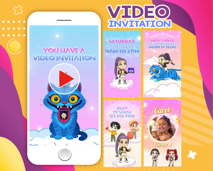👹🎉 Bring a cute and playful KPop Demon Hunters vibe to your child’s birthday with this bright and cheerful video invitation!