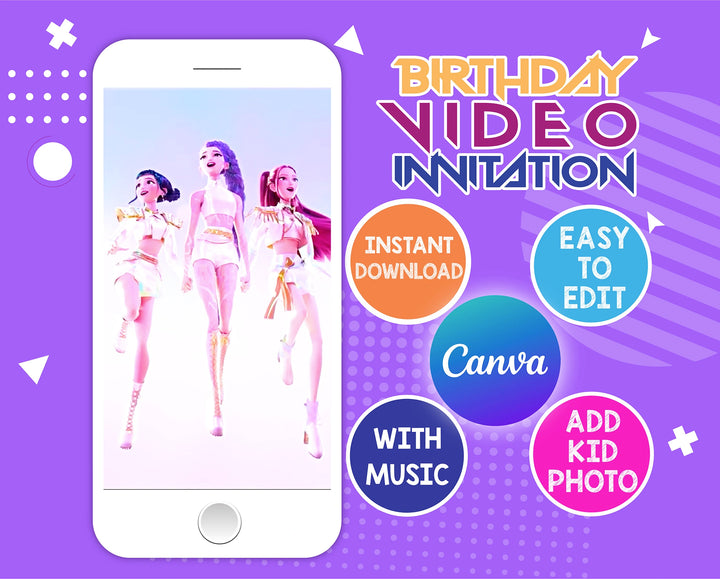Bring the energy of KPOP Demon Hunters to your birthday celebration! This editable animated video invitation lets you create a vibrant and modern party invite that feels straight out of your favorite KPOP scene. Customize all the text easily in Canva — no software or design skills needed!